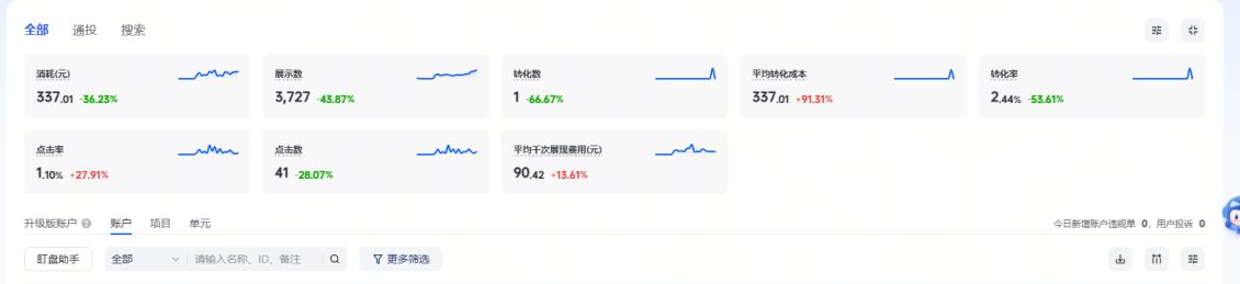 果断拨打了我的电话,马上邀约我们到他公司面谈。见了面后,我和技术一起诊断分析了他的账号,账号基建没有做准确,视频都是混剪,关键词没给他做优化排名,信息流投放设置完全不对。所以导致花了那么多钱,带来了那么高价格的询盘成本,如果不是俞总设备的高客单价,根据就挡不住337.01元/个的询盘成本。